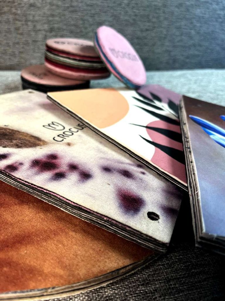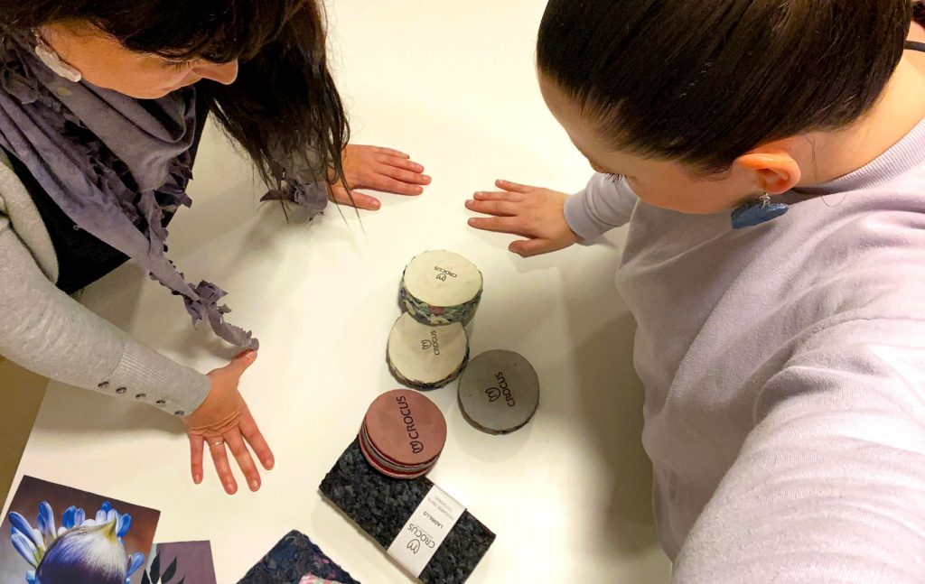 En el año 2021, a raíz de un concurso de diseño durante la pandemia, Mariana Paredes y Macarena Bravo crean Crocus un proyecto pensando en la tres “R” (Reducir, Reciclar, Reutilizar), comenzaron creando diversos productos para el hogar y accesorios, pero decidieron ir más allá con el innovador material que habían desarrollado.