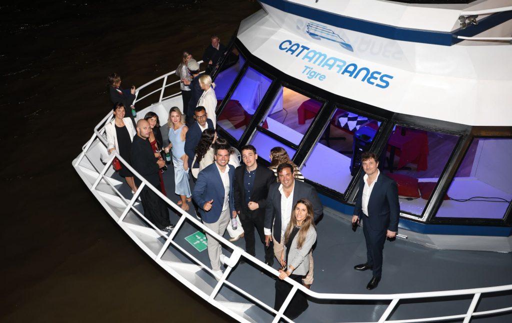 Cuisine & Vins volvió a sorprender con su tradicional gala anual, esta vez con un formato inédito: una gran fiesta cultural y gastronómica sobre las aguas del Río de la Plata. La gala naútica de Cuisine et Vins tuvo lugar en la terminal fluvial Sturla de Puerto Madero, donde los invitados embarcaron para disfrutar de una noche única a bordo de un catamarán, con una puesta escénica inspirada en el universo náutico.