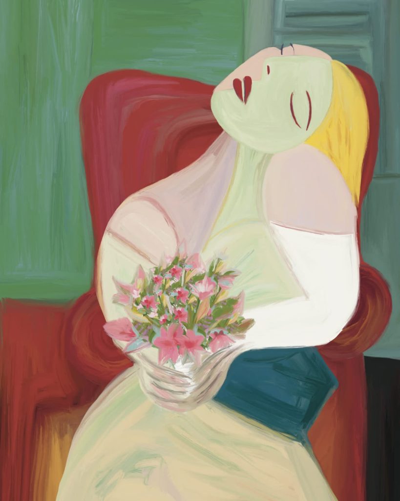 Comenzamos esta exposición con un dibujo de Chico Caruso realizado para su libro “Pablo Mon Amour”, que formaba parte de una exposición organizada por André Barroso con motivo de 20 años sin Picasso, en la Asamblea Legislativa de Minas Gerais y 30 años sin Picasso en diferentes puntos de Niterói.