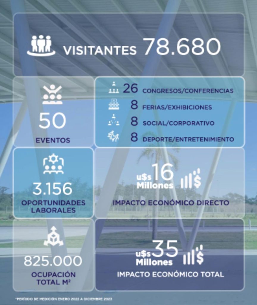 Durante el bienio 2022-2023, el CEC fue sede de 50 eventos, que convocaron a más de 78.000 delegados. Estas actividades generaron un impacto económico directo de USD 16 millones, un impacto total superior a USD 35 millones, y 3.156 oportunidades laborales, consolidando al Centro como una infraestructura clave para el desarrollo del turismo de reuniones en Uruguay.