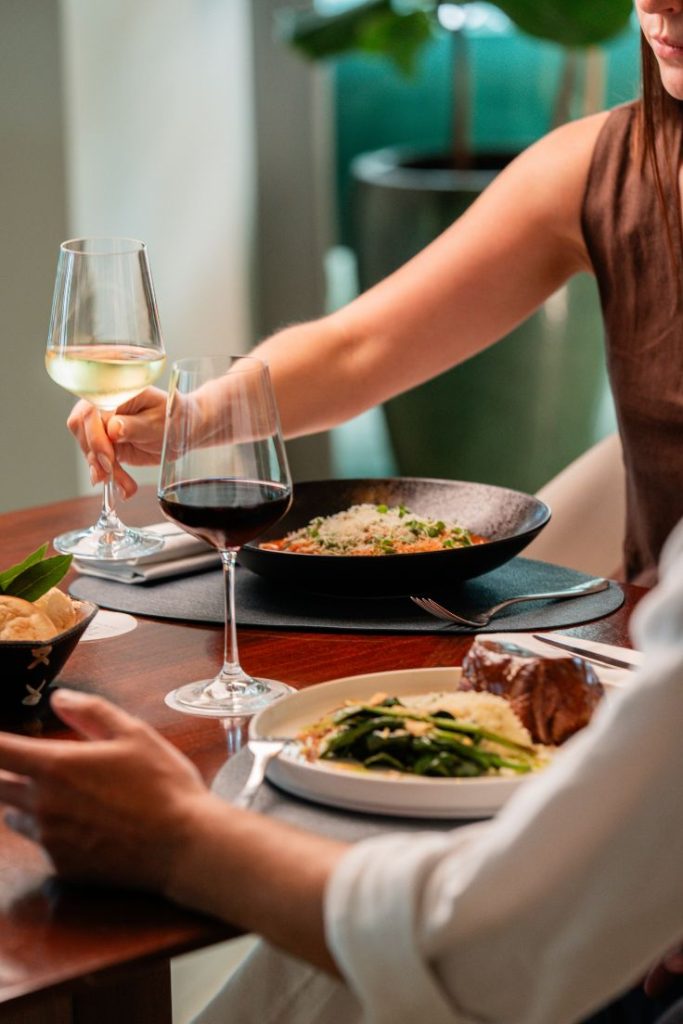La cocina a cargo del chef Santiago Mannella se apoya en ingredientes locales y de estación, con una cuidada selección de productos de mar y tierra, vegetales grillados, brotes frescos y platos reconfortantes, pensados para disfrutar con calma y en sintonía con el entorno.